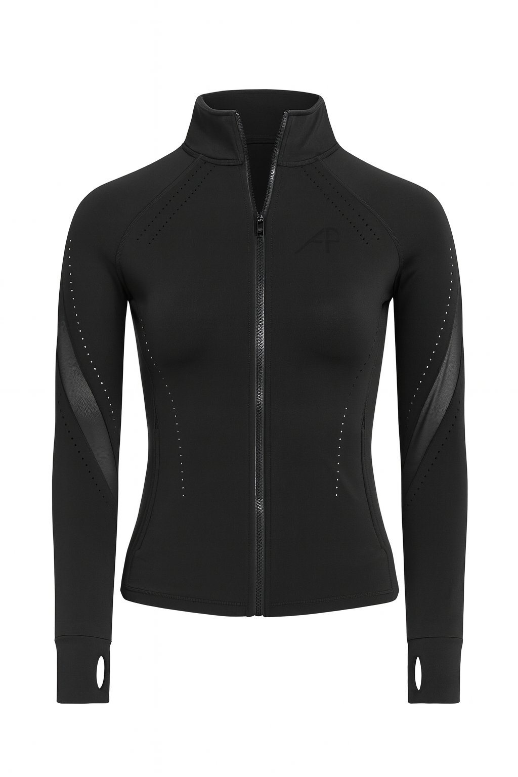 The Power Punched Jacket is your sleek new layer for workouts and beyond. With laser-cut perforations and mesh sleeve panels, it delivers breathability without sacrificing coverage. The tailored fit flatters your shape while thumbhole cuffs keep everything in place as you move. Lightweight, versatile, and finished with the signature FP logo, this jacket is built for women who want performance and style in one.