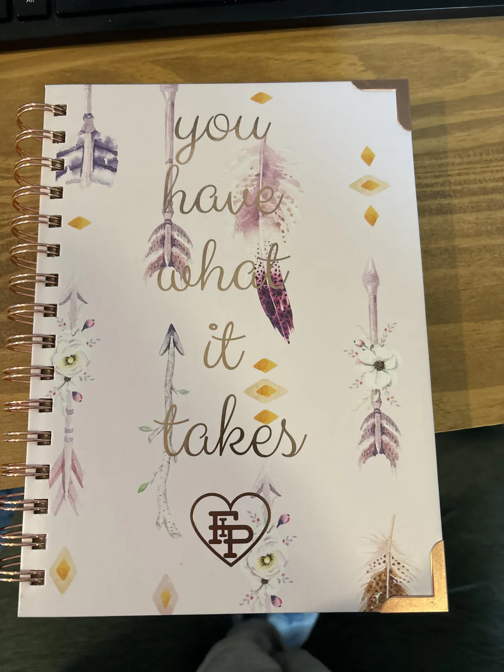 This undated 12-month FIP planner is filled with amazing quotes, monthly goals, grocery lists, water trackers, monthly challenge trackers, stickers, 12-month colorful dividers, and so much more. We included tabs, stickers, and a super cute rose gold pen.
